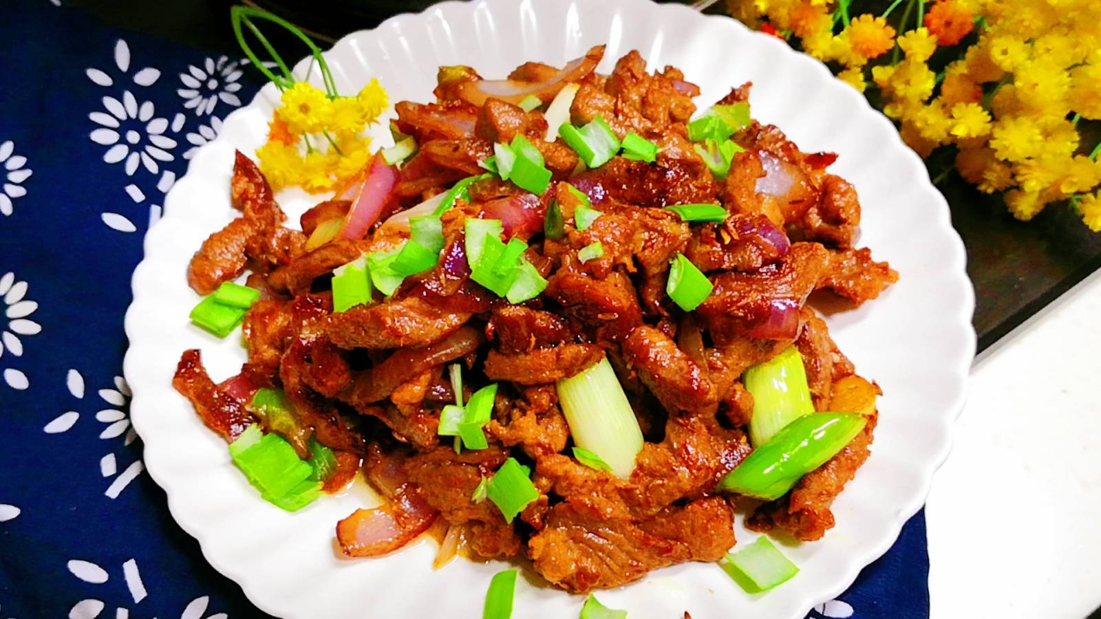 ♥ 炒羊肉时要大火快炒,这样才能保持羊肉鲜嫩的口感,炒好后嫩而不柴。