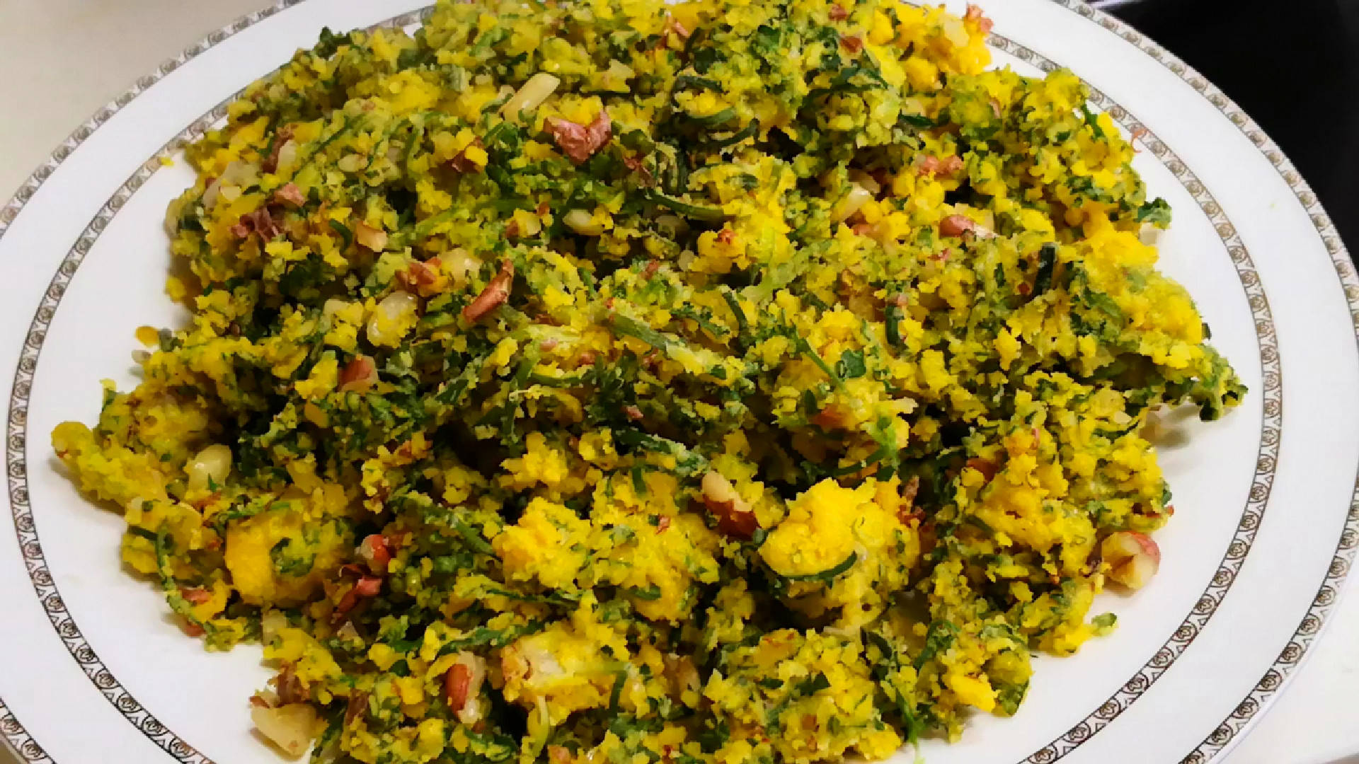 荠菜这样烙成鸡蛋饼,可以当菜吃。如果想要做成早餐饼当饭吃,可以加入两勺面粉,少加一点食盐烙,香软可口,也是非常美味的!