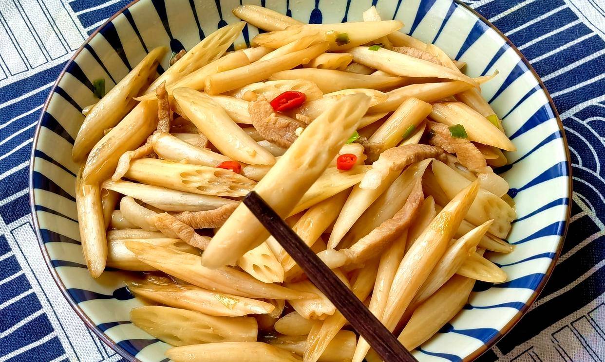 很多北方朋友可能觉得眼生。没错,这东西以前在北方菜场里确实是个稀罕物。它其实是莲的嫩茎,是莲藕在长大成形之前的幼年阶段,掐着点儿采下来,鲜嫩得能掐出水。这几年托了物流的福,这南方的水灵物儿,也越来越多地出现在咱北方的摊位上,要是您碰巧遇见了,千万别犹豫,赶紧下手! 这玩意儿金贵就金贵在它的时令性上,也就初夏这短短一两个月里最脆最嫩最好吃,过了季,想吃就得再等一年了。藕带吃法可太多了,清炒、凉拌、酸辣、做汤,样样都出彩。下面这俩家常做法,简单快手又好吃,保证您一学就会,吃了还想吃!