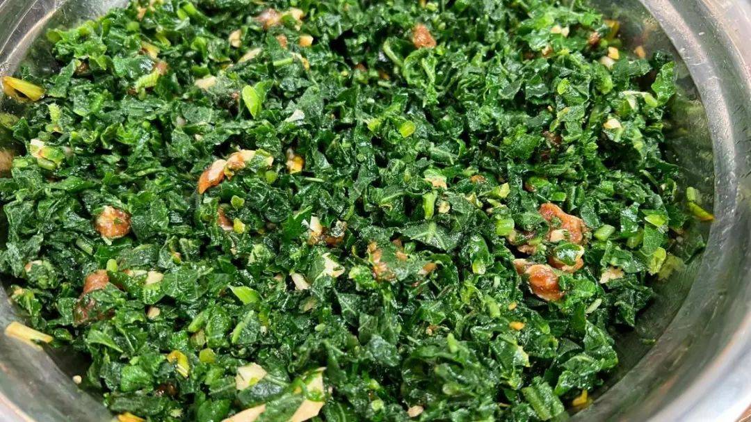 2、大锅水烧得翻跟头,抓把盐再滴几滴油(叶子更绿)。嫩叶子分三批下锅,筷子搅两圈就捞,速度要快!捞出来立马怼冷水里过凉,攥成翡翠团子挤干水,放案板上”咔咔”剁碎备用。