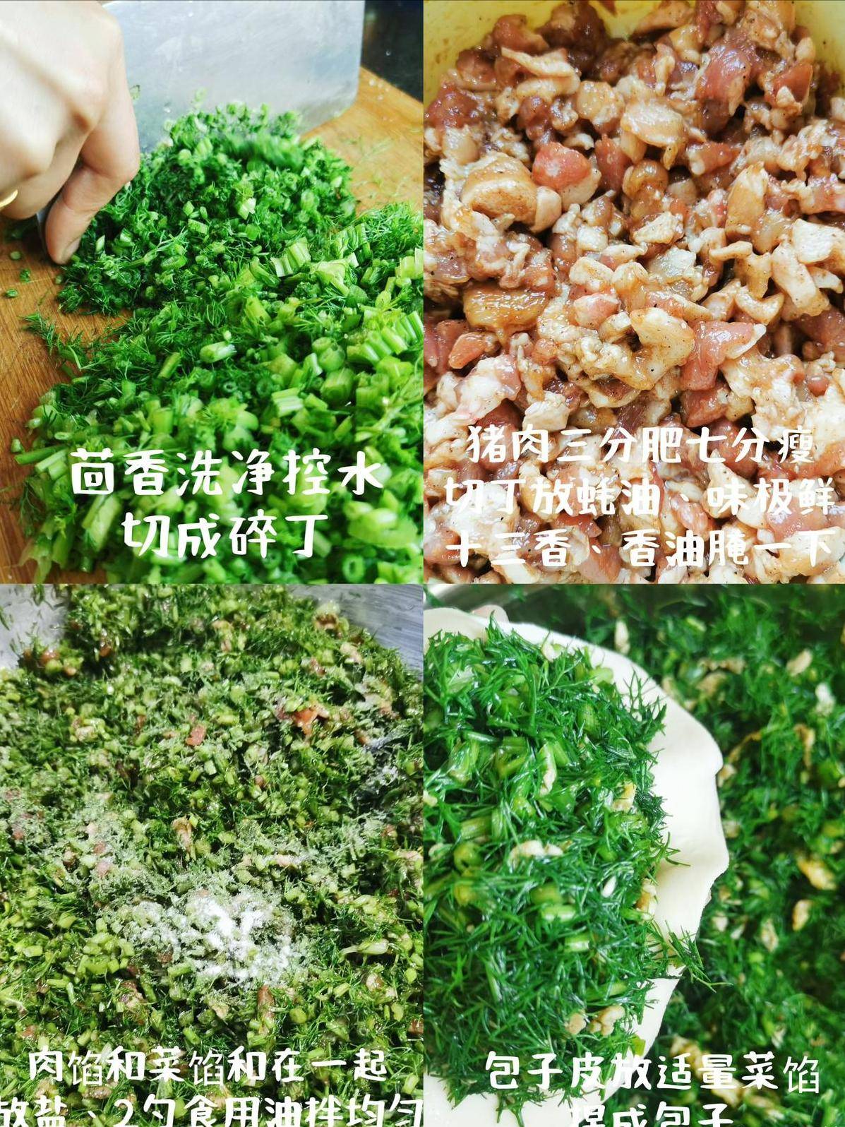 2、调馅要锁水:五花肉剁成石榴粒大小,别用绞肉机!分三次加3勺葱姜水(葱姜泡的温水),顺时针搅到黏手。茴香切碎先拌2勺香油,再和肉馅混合,这样不出汤。