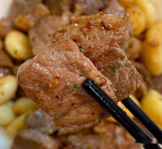 撒上最后现磨的黑胡椒,配着烤蒜肉一起吃会有惊喜——经过油淋的蒜瓣变得绵软香甜,和牛肉的野性相得益彰。记得每口咀嚼20下以上,这是里昂老屠夫教的:”让味蕾和肉汁跳完一支完整的华尔兹。”