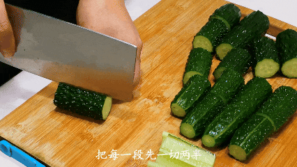 第一步:先把黄瓜清洗干净,去掉头尾口感不好的部分,然后切成长段,再从中间劈切成长条,切好后放到盆里,加入2勺盐和2勺白糖,搅拌均匀后腌制上2个小时,刹刹黄瓜里面的水分,这是黄瓜脆爽好吃的关键。