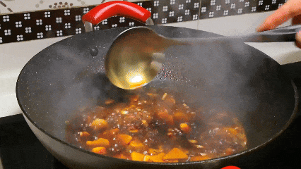第四步:再来熬个料汁,起锅加入稍微多一点的花生油,然后放入花椒、八角、香叶、桂皮和干辣椒,炸香后倒入500克黄豆酱油,再倒入30克白糖,50克盐、一点味精,大火烧开以后,再淋上一圈高度白酒,然后关火,放凉备用就行啦。