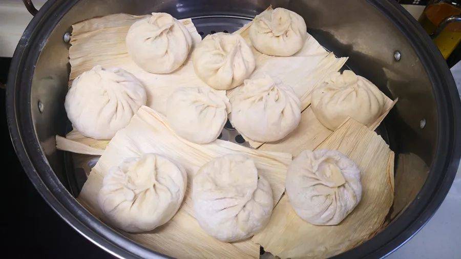 6、蒸包子:二次发酵后,开火上气后再继续蒸15~20分钟就可以关火了,然后继续焖2~3分钟后再开锅,可以防止包子塌陷。香喷喷的豆角肉馅包子就做好了,太好吃!