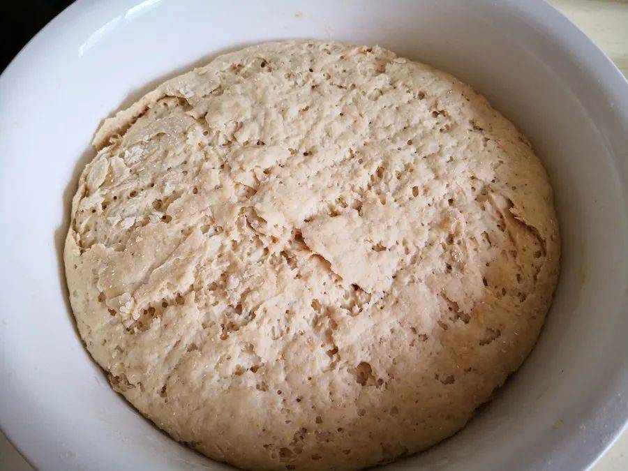1、发面:把5克酵母粉用温水化开,倒入到500克面粉中,然后再加入30度左右的温水调面,调至没有干面粉了,再把面揉到一起,盖好盖子发面至两倍大,大概需要一个半小时就能发好。