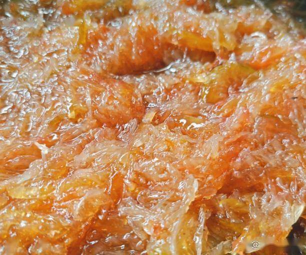 原来她外婆是广东人,家里祖传的”三蒸三晒”法处理柚子皮:先用盐搓洗表皮,削去白瓤只留金黄外皮,上锅蒸透再晒干。我学着她把晒干的柚子皮剪成细丝,装在玻璃罐里像收藏了一罐阳光。