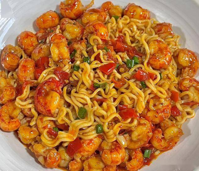 最后压轴出场的这位,可是能让人半夜想起来都流口水的狠角色——小龙虾拌面。别看名字唬人,其实在家做比叫外卖还快。