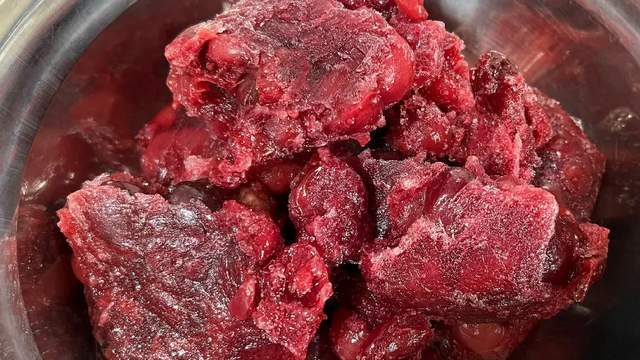 这冻起来的樱桃罐头,简直是“懒人福音”和“馋猫救星”的完美结合!想吃的时候?打开冰箱冷冻室,随手掰下一块冻得硬邦邦的“红宝石砖”。喜欢冰凉透心爽?稍微化个十几二十分钟,勺子一挖,带着晶莹小冰碴的糖水樱桃送入口中,那酸甜冰爽的劲儿,瞬间浇灭夏日的燥热,可比吃雪糕过瘾十倍! 天凉了想暖胃?简单!丢一块进小奶锅,加点水(或者不加)煮开,热乎乎、甜滋滋的糖水包裹着软糯果肉,咕咚咕咚喝下去,那份熨帖满足感,跟开一罐黄桃罐头一模一样!关键是什么?一次煮好,塞进冷冻室,就能吃上大半年! 随吃随取,省心省力到没朋友。
