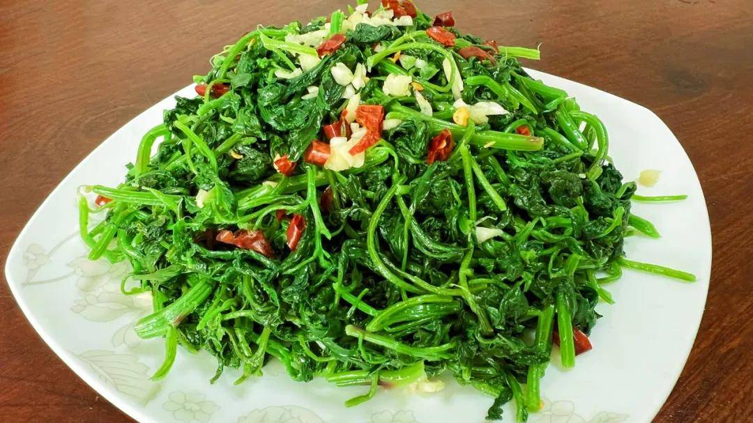 凉拌灰灰菜:所需食材: 灰灰菜、蒜末、干红辣椒、盐、味极鲜、滚烫的热油