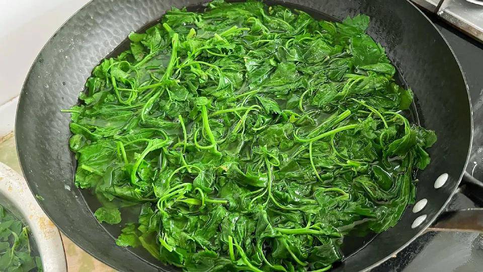 3、迅速淋入味极鲜(或生抽),筷子翻飞拌匀。热油激出的香气牢牢裹住每一片灰灰菜叶。