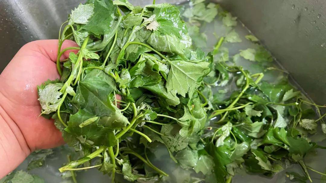 清洗灰灰菜的时候加点面粉,浸泡一会儿,然后冲洗干净,拔灰灰菜的时候记得掐嫩叶,太老的就不要了。