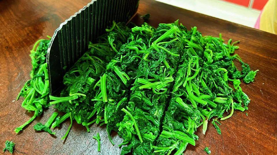 锅中加水,滴几滴食用油,倒入灰灰菜,看到变绿捞出过凉,灰灰菜要浸泡两天,中间换几次水,看到水变清就可以食用了,这样灰灰菜就没有异味了。浸泡好以后挤干水分,捏成菜团子,装入保鲜袋,放冰箱冷冻保存,随吃随取,特方便。