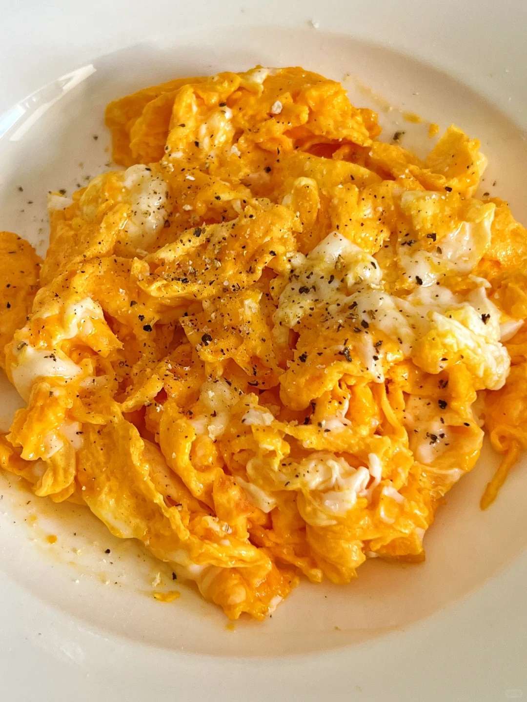最神奇的是加一勺牛奶,打蛋时加入,炒出来的鸡蛋会有布丁般的滑嫩。这个秘诀是我从西餐师傅那里偷学来的。