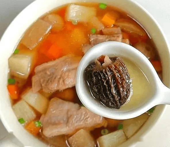 先说说羊肚菌,这家伙可是菌菇界的”爱马仕”,不仅味道鲜美,还富含多种氨基酸。别看它长得皱巴巴的,营养可一点都不含糊!搭配上山药这个”脾胃小能手”,简直是天作之合。再加上胡萝卜的天然甜味和排骨的醇香,这汤想不好喝都难。