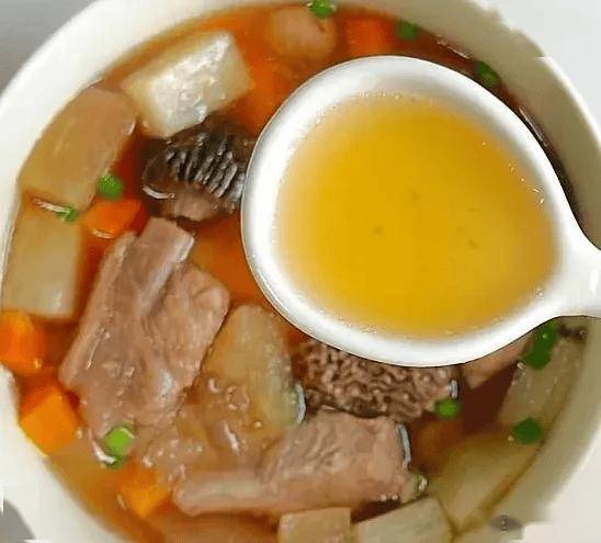 盛汤的时候一定要用白瓷碗,看着奶白色的汤底,点缀着橙红的胡萝卜和棕褐色的羊肚菌,光看着就让人食指大动。先闻一闻香气,再小口品尝,让汤汁在嘴里多停留一会儿,感受各种食材的完美融合。