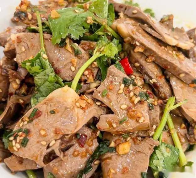 猪心切片后别急着拌,先铺在黄瓜丝上晾凉。酱汁用蒜泥+辣椒油+芝麻酱调成,最后撒上炸得金黄的洋葱酥。脆的软的香的辣的全在嘴里开派对,保准你家米饭要遭殃!