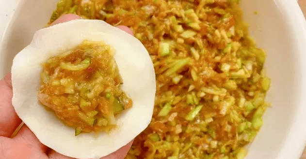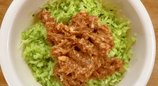 - 淋上1-2汤匙香油(可以防止西葫芦出水,也能增香),再根据前面杀水时放的盐量和自己的口味,酌情补一点点盐(一定要先尝一下咸淡!)。再次强调:顺着同一个方向搅拌均匀即可。 别过度搅拌,否则西葫芦丝会变得更软烂。拌好的馅料油润润的,散发着诱人的香气。
