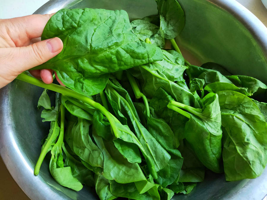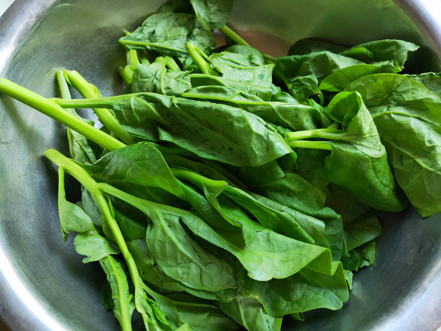 处理食材:木耳菜摘去老梗,只留下嫩叶和嫩茎,清洗干净后备用。