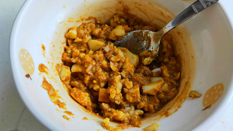烹饪小技巧:煮好的鸡蛋一定要完全凉透后,再和大蒜混合放到一起。不然,如果鸡蛋太热,会将大蒜烫出一股怪味,影响菜品的口感。