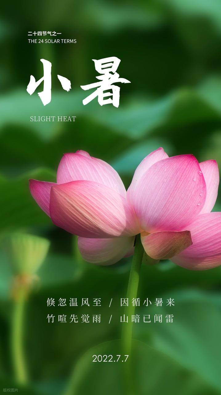 “倏忽温风至,因循小暑来。竹喧先觉雨,山暗已闻雷。”时间飞逝,不经意间来到了7月7日–小暑,小暑是二十四节气中的第十一个节气,也是夏季的第五个节气,通常在每年公历7月6 – 8日交节。元·吴澄所著《月令七十二候集解》:“六月节……暑,热也,就热之中分为大小,月初为小,月中为大,今则热气犹小也”,小暑的到来,意味着天气开始进入一年中最炎热的阶段,民间有“小暑大暑,上蒸下煮”的说法。