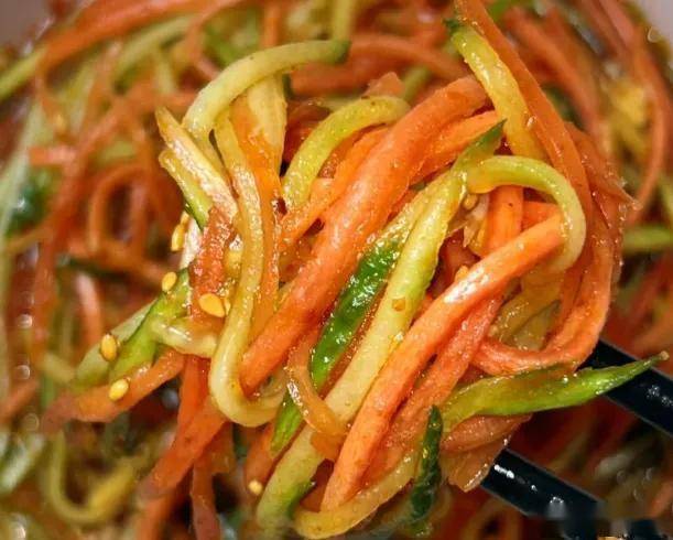把白萝卜、胡萝卜、青瓜切成细丝,讲究的可以用刨丝器刮出蝉翼般的薄片。重点来了!撒上一小撮盐腌十分钟,挤掉多余水分后,淋上蜂蜜柠檬汁,再撒点熟芝麻。酸甜中带着芝麻香,脆得能听见牙齿的欢呼。我家小侄子管这叫”会唱歌的凉菜”。