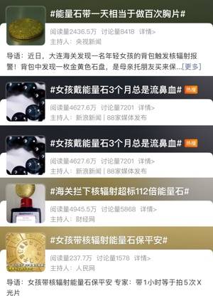 前些年,“能量石” 首饰掀起一阵热潮,商家大肆宣传其 “强身健体、带来好运” 的功效,甚至夸大其词称能 “净化血液、防癌抗癌”,导致其价格飙升,不少不明真相的消费者为了追求健康和平安高价购买。但这一神话很快被央视曝光击碎:大连海关查获的一颗能量石饰品,辐射量高达 112.4µSv/hr;另有旅客携带的能量石首饰,辐射量竟是现场本底值的 1050 倍,其中 1 类致癌物钍 – 232 超标 112 倍。专业人士解释,辐射量超过 50 万微西弗,就可能导致人体出现恶心、乏力、脱发、免疫力下降、白血球减少等症状;接触剂量超过 200 万微西弗,还可能引发放射病,破坏骨髓功能。即便辐射剂量不高,长期佩戴也会累积风险,增加患癌概率,所谓 “能量” 不过是商家编造的营销谎言。