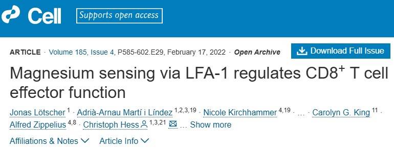 CD8+T细胞是免疫系统的“精锐部队”,专门负责识别并清除异常细胞,包括癌变细胞和被病原体感染的细胞,其功能强弱直接决定着机体抗癌防线的稳固程度。而巴塞尔大学的研究明确指出,这支“精锐部队”的战斗力,高度依赖镁的“供给”——只有在富镁的环境中,CD8+T细胞才能高效执行清除任务。这一发现的核心,指向了T细胞表面一种名为LFA-1的关键蛋白。