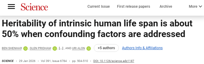 长久以来,科学界对人类寿命的影响因素争论不休,传统观点基于双胞胎、家族谱系研究,认为遗传对寿命的贡献仅为 10% 至 25%,环境、生活方式与医疗条件才是决定寿命的关键。但发表在《科学》期刊上的一项重磅研究,彻底颠覆了这一认知,揭示出基因对寿命的影响远超想象。