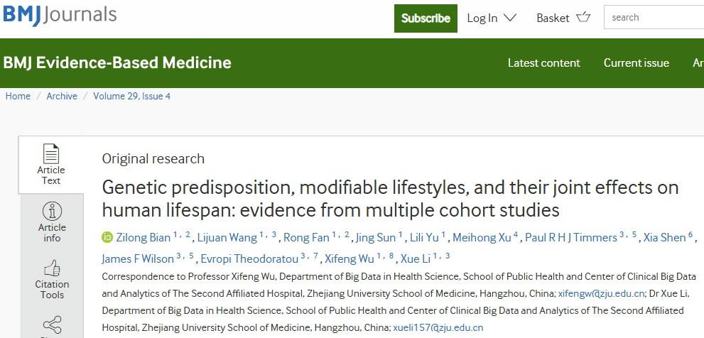 浙江大学、南京医科大学、北京大学等研究人员曾在《BMJ循证医学》上发表过一项重磅研究,为我们打破基因宿命提供了科学依据。研究人员对35.3万余名欧洲血统的成年受试者展开长期调查,重点分析遗传、生活方式与寿命之间的关联。最终结果令人振奋:遵循不吸烟、定期运动、充足睡眠、健康饮食这四种生活方式,可抵消62%短寿基因遗传的影响。即便本身携带短寿基因,坚持这四种习惯,也能让受试者在40岁时的寿命延长5.2年。需要说明的是,该研究属于观察性研究,无法明确二者之间的因果关系,但这并不影响其为我们的健康生活提供重要参考。