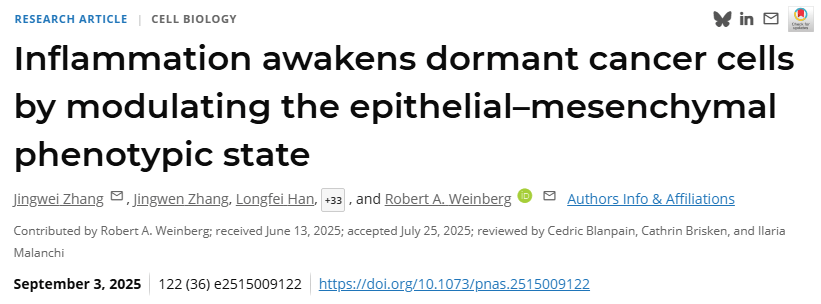 中科院与麻省理工学院的研究人员在《美国国家科学院院刊》上发表的一项研究,揭开了炎症唤醒休眠癌细胞的秘密。研究人员在小鼠身上模拟乳腺癌发生及向肺部转移的过程,发现部分癌细胞会进入休眠状态。但当小鼠肺部出现炎症时,这些沉睡的癌细胞就被成功“唤醒”,如同被钥匙打开了启动开关,它们迅速恢复分裂能力,甚至进化出形成转移瘤的能力,最终导致癌症复发和转移。